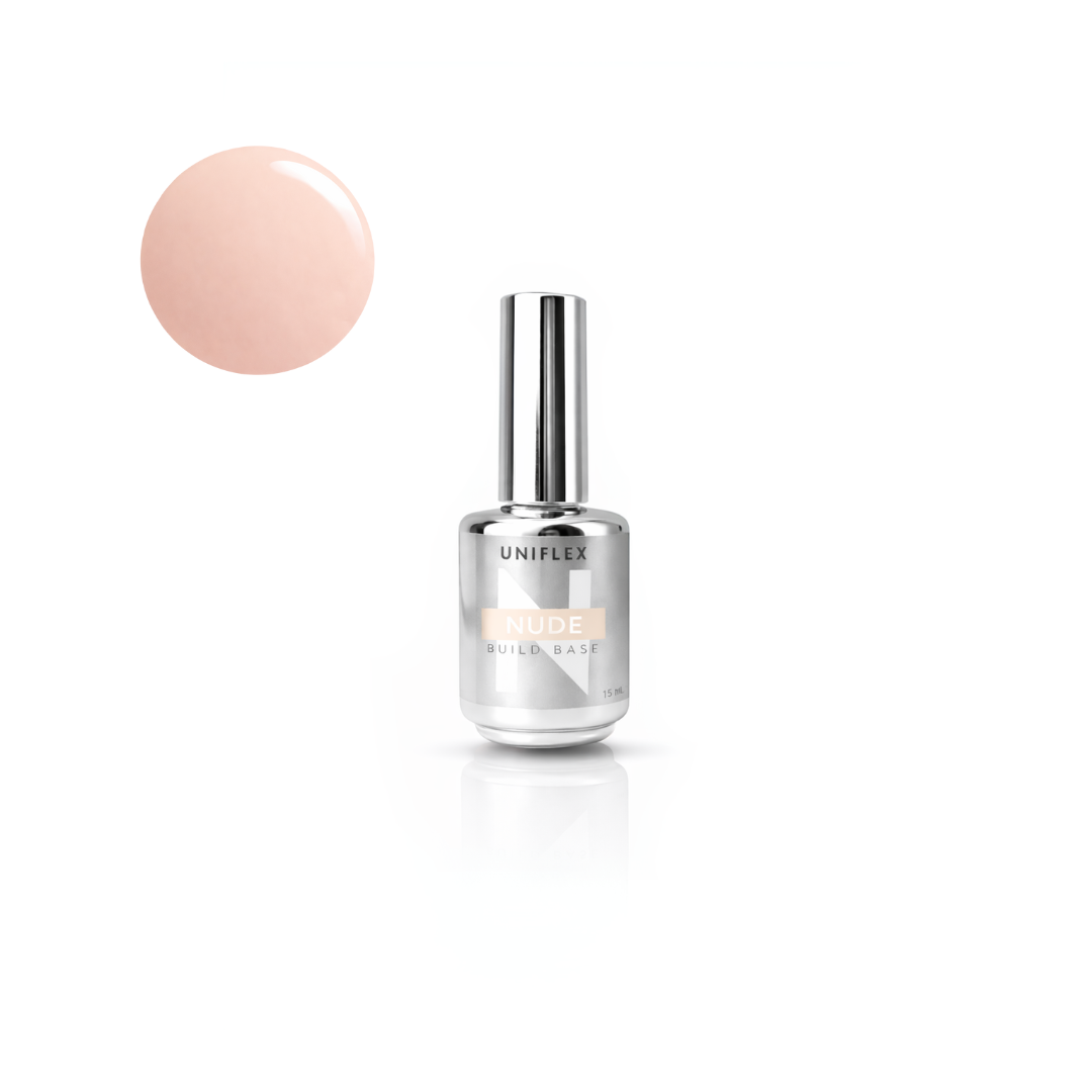 Najprije se nanosi podloga (svim sistemima) Uniflex CLEAR build base, nakon sušenja clear baze u tankom sloju nanosimo Uniflex NUDE base te dodajemo malo veću količinu kako bismo izgradili nokat.