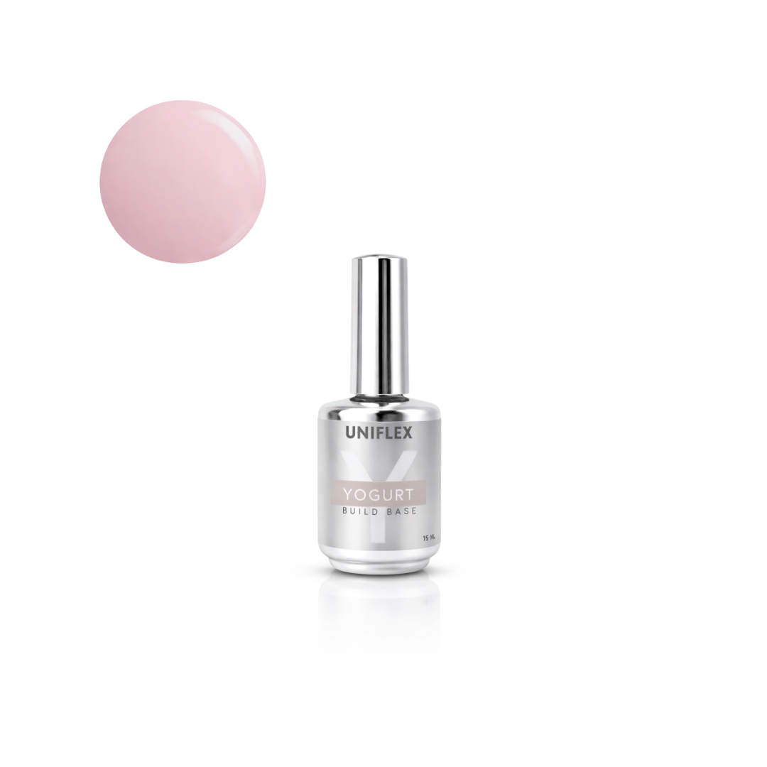 Najprije se nanosi podloga (svim sistemima) baza 4in1 SUPREME build base, nakon sušenja 4in1 baze u tankom sloju nanosimo Uniflex YOGURT base te dodajemo malo veću količinu kako bismo izgradili nokat.